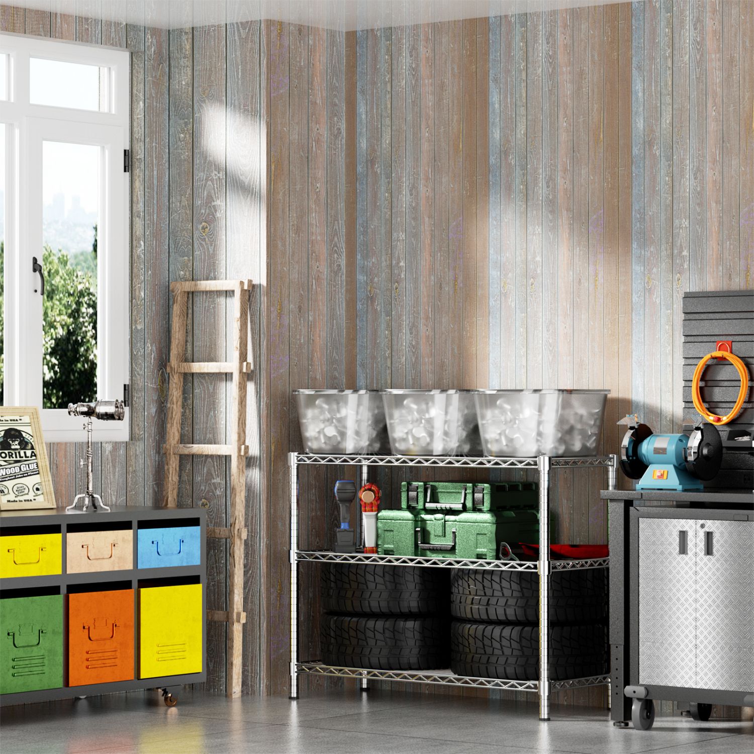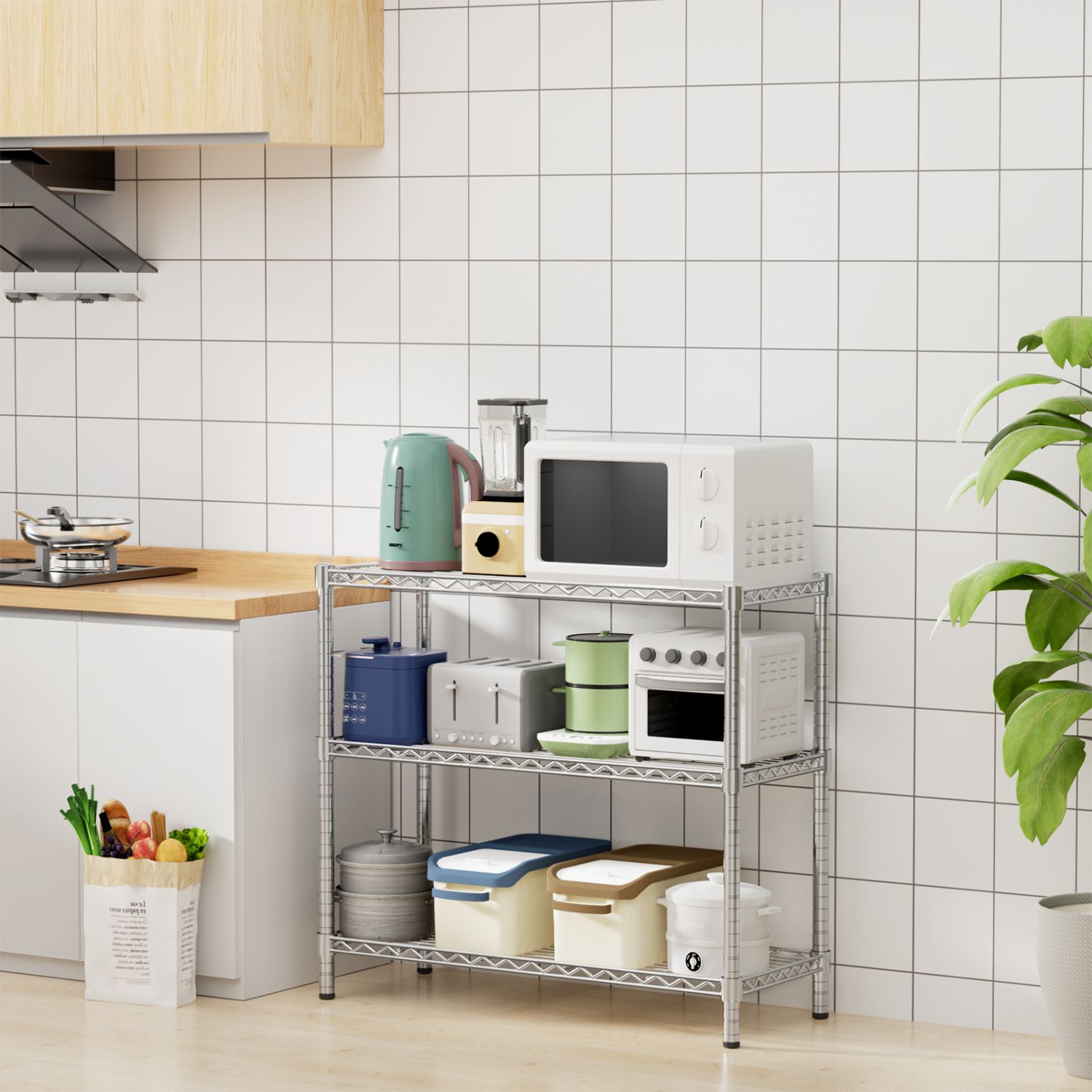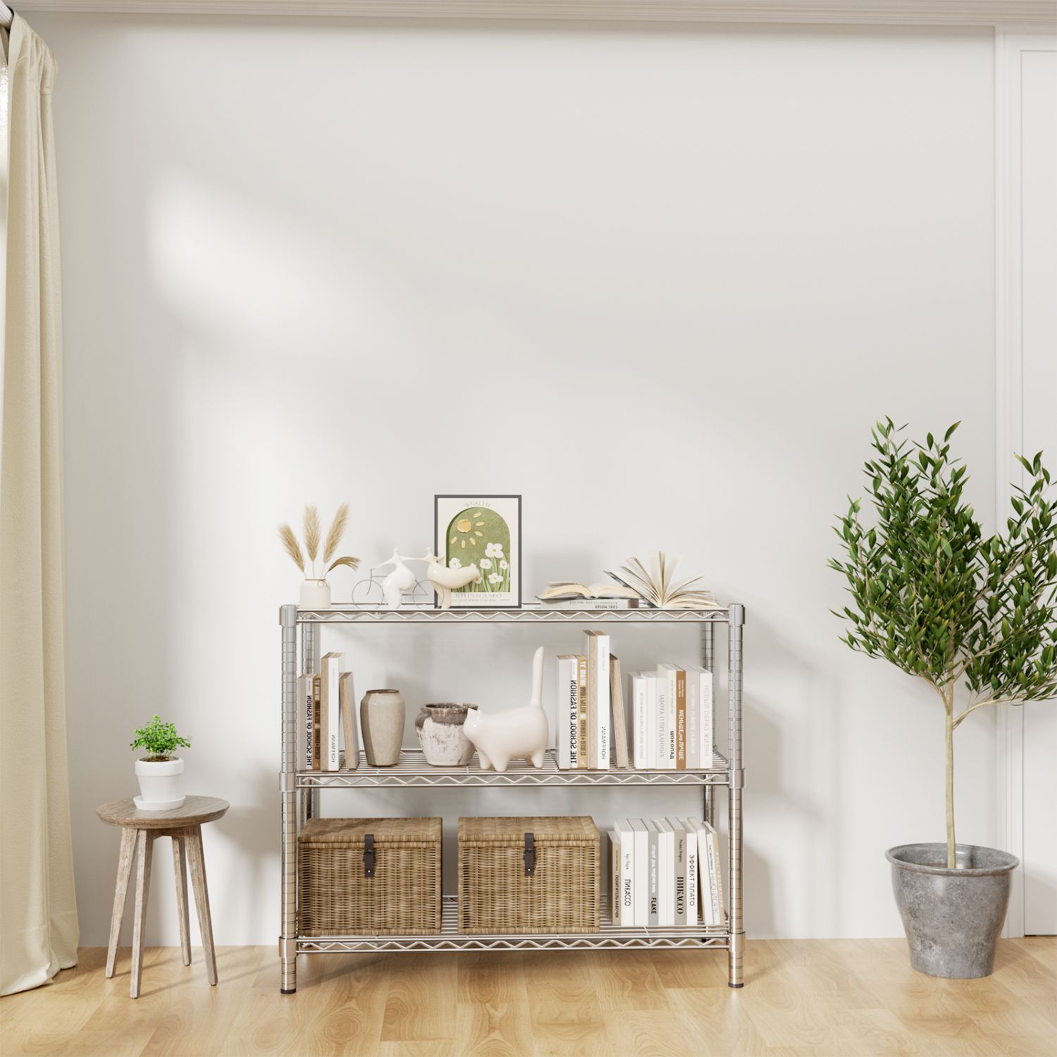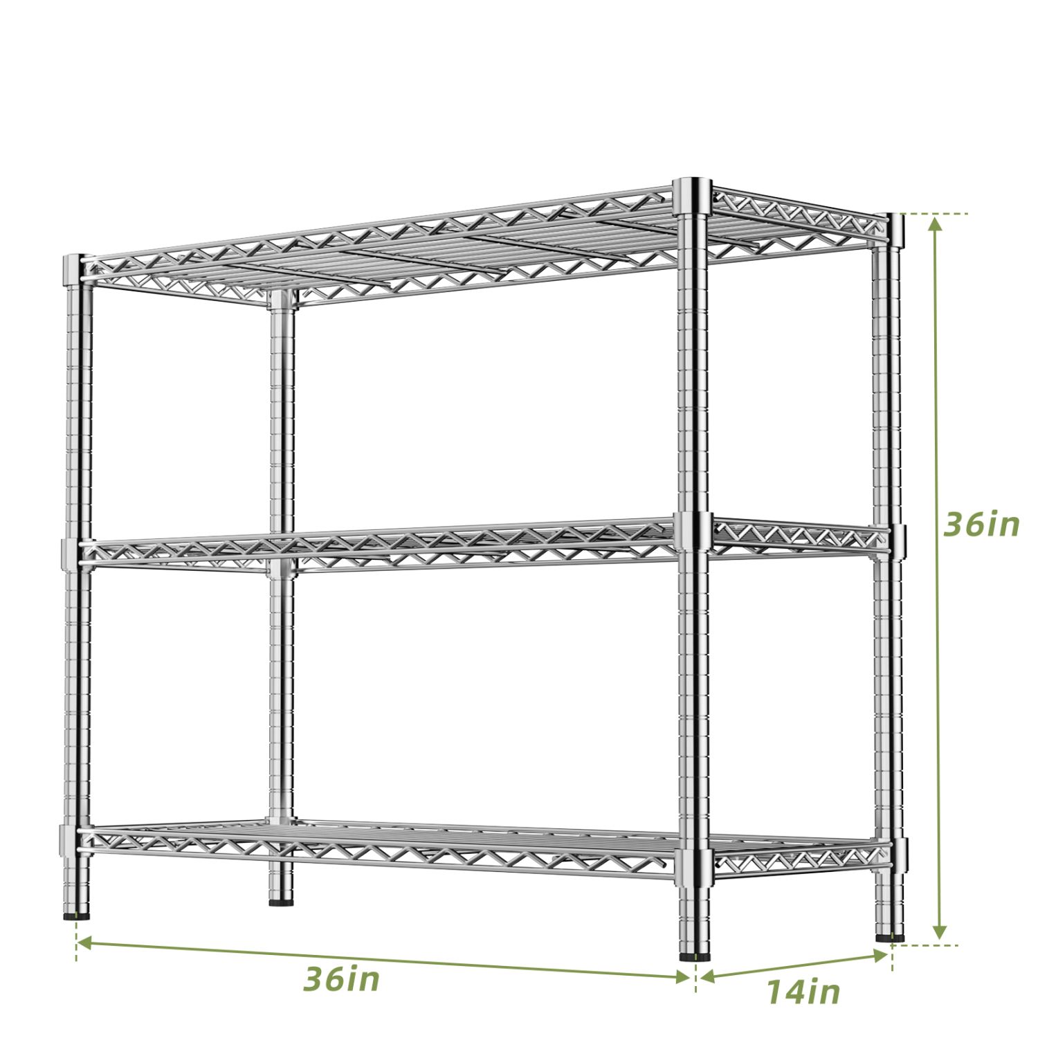 Adjustable & Space-Saving: Customize shelf heights (12""-15"" between tiers) to fit tall items. Compact 36""W x 14""D x 36""H frame fits snugly in tight spaces like closets or beside washing machines.